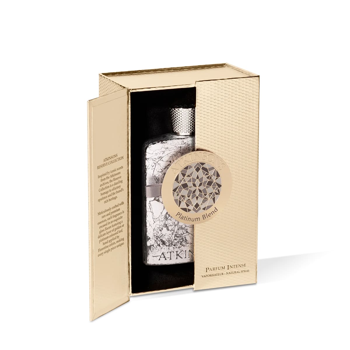 عطر بلاتينيوم بليند المركز هو احتفال فريد ومتلألئ بأجواء العشرينيات الصاخبة والمبهجة في لندن. حيث كانت النخبة الشابة المتألقة، المتزيّنة بالألماس وأفخر مجوهرات البلاتين، تتنقل من مكان إلى آخر ترقص على أنغام تشارلستون، مستمتعة بحريّة بريطانيا ما بعد الحرب. مستوحًى من أسماء محفوظة في أرشيف أتكينسونز لأشخاص من النخبة الراقية في تلك الحقبة، يجمع هذا العطر بين برودة افتتاحيته المتألقة ونهاية دافئة ومجيدة، ليكون متلألئًا كالبلاتين ولا يُقاوم كسحر “جوي دو فيفر” المترف الذي ميزهم.