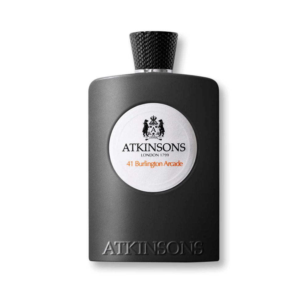 عطر 41 Burlington Arcade من Atkinsons أو دو بارفان بحجم 100 مل. عطر خشبي حار للجنسين يجسد الحداثة والأناقة المتطورة لشارع بيرلينغتون آركيد الشهير. يتميز بتركيبة قوية ومكثفة تجمع بين نفحات الحمضيات الحادة والتوابل الداكنة، مع قاعدة عميقة من العود والجلد.